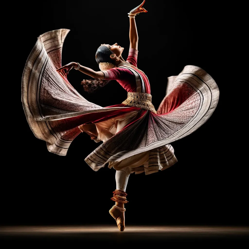- Kathak Rapture: Freeze a Kathak dancer's intricate footwork and spins. Use Nikon D850, 70-200mm f/2.8 at 200mm, f/4, 1/1000s, ISO 1600. Isolate dancer against black backdrop, --ar 16:9.