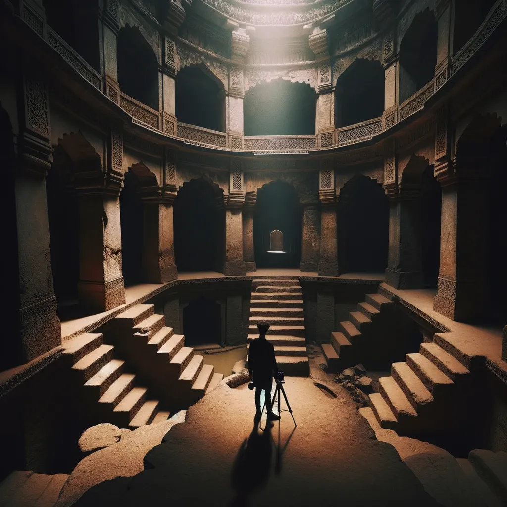 - Rajasthan's starry depths: Ancient steps, cosmic canvas. Sony A7S III, 16-35mm at 16mm, f/2.8, 25s, ISO 6400. Mirror lock, noise reduction, stack. --ar 16:9