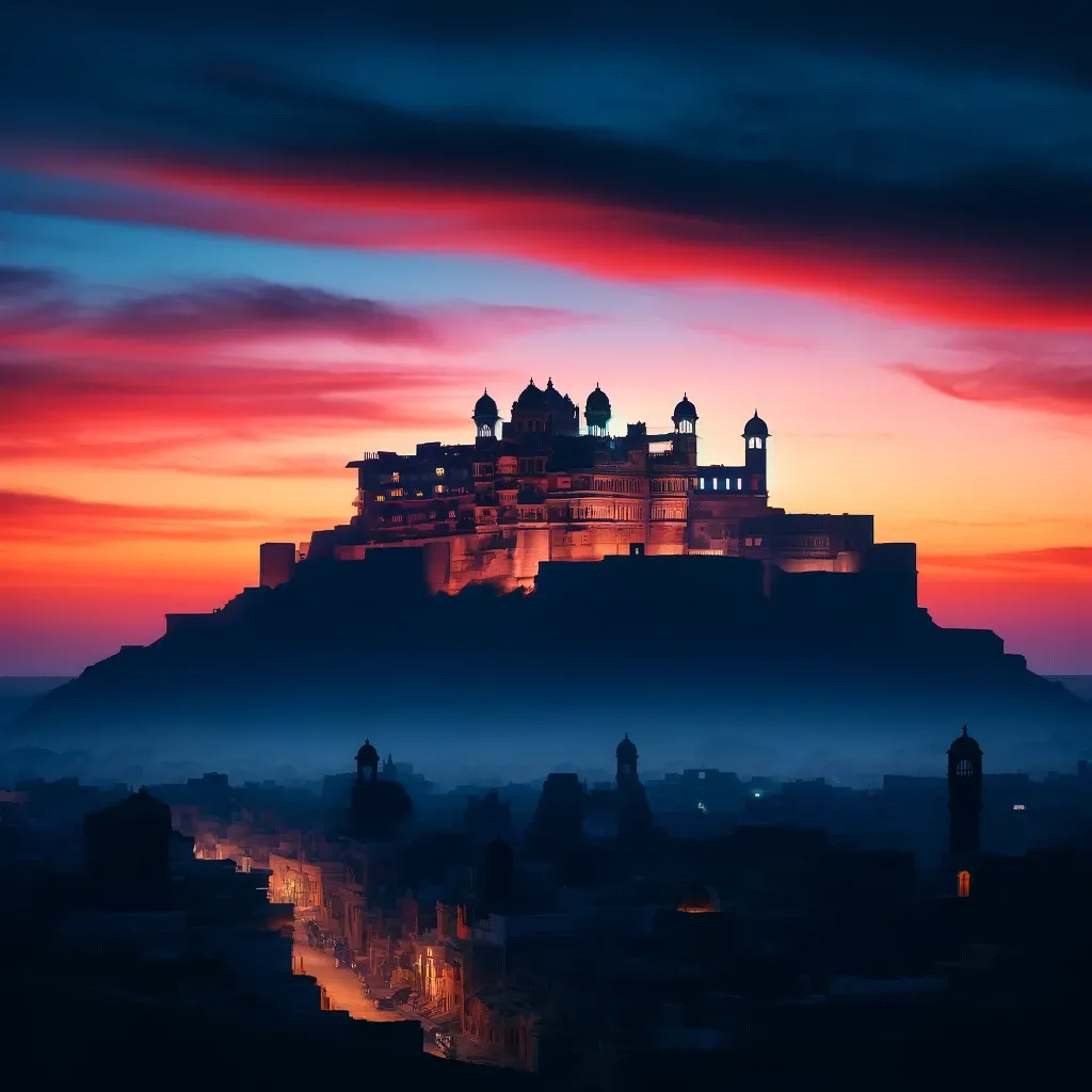 - Mehrangarh Silhouettes: Capture Mehrangarh Fort against twilight sky. Position at Jaswant Thada during blue hour. Sony A7R IV, 70-200mm f/2.8 at 135mm, f/11, 2s, ISO 100. Use ND filter, --ar 16:9.
