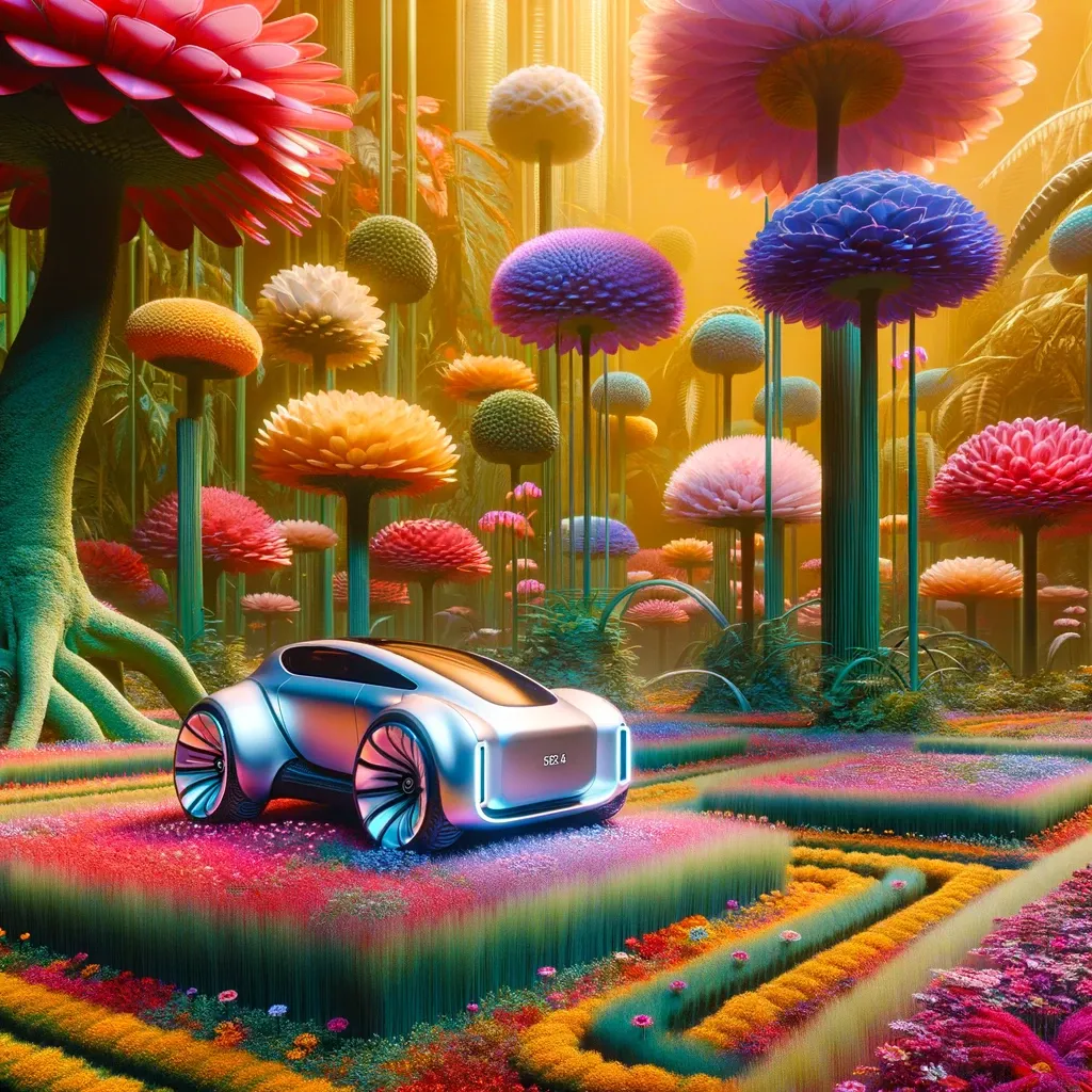 - Microcosmic Joyride: Mini car in surreal landscape of giant flora. Nikon Z7 II, 105mm macro, 1/200s, f/11, ISO 200. Focus stack. --ar 16:9