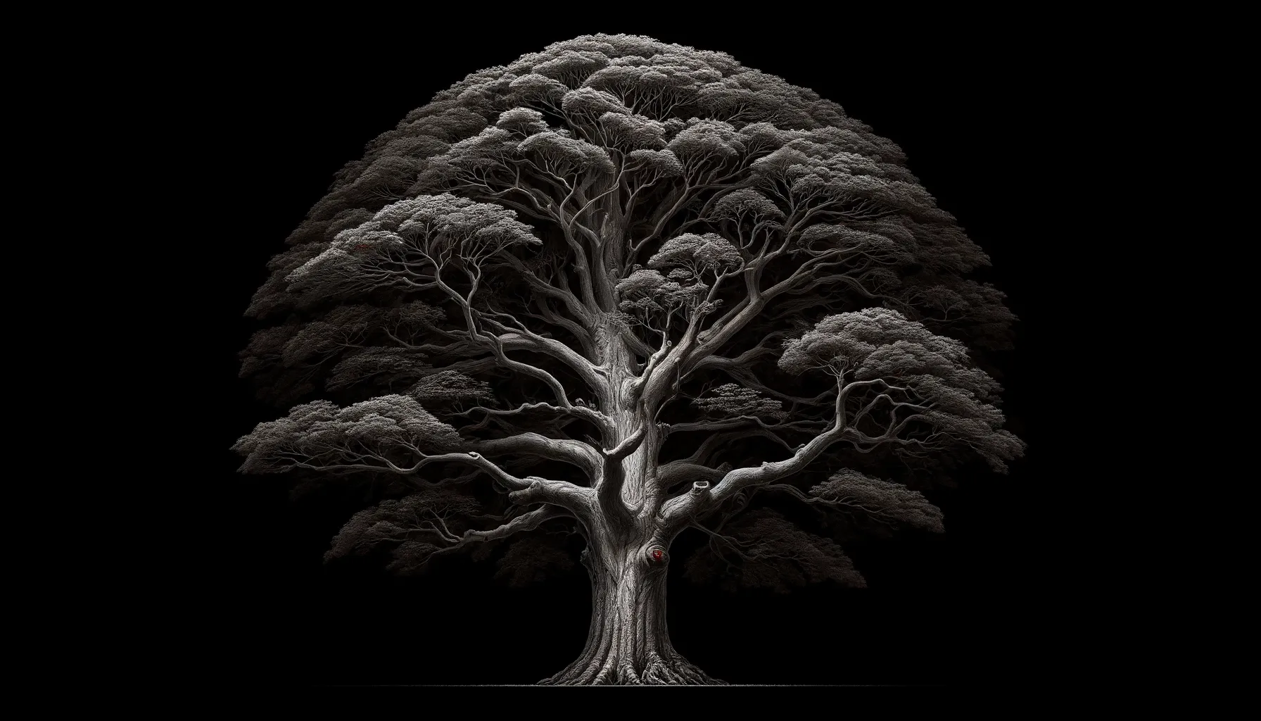 Every part of the tree is connected to every other part. The branches emanate from the trunk, the leaves from the branches.